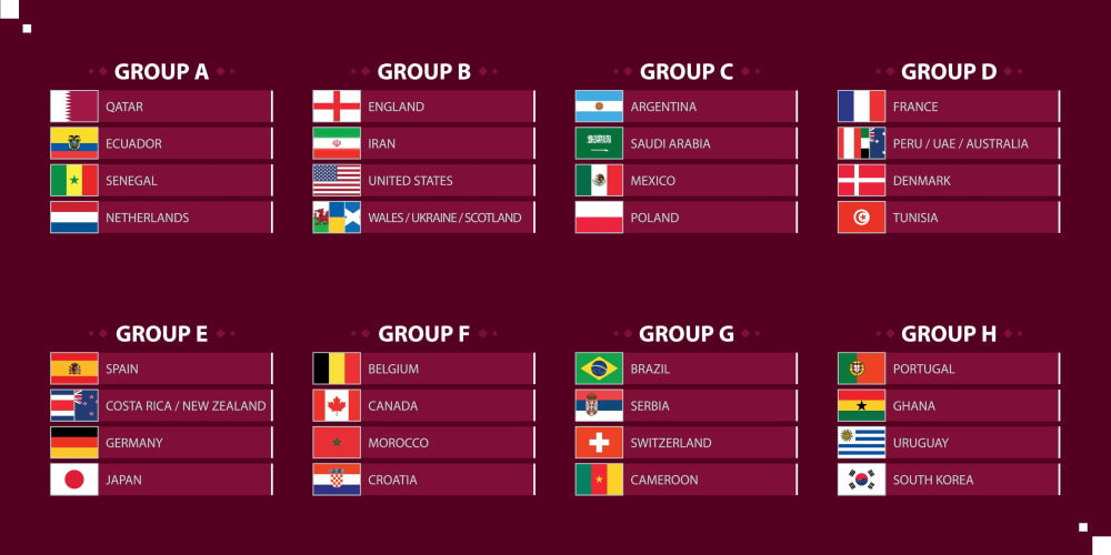 Συνολικά υπάρχουν στο παγκόσμιο κύπελλο 2022 ομάδες 32 ομάδες σε αριθμό οι οποίες έχουν τοποθετηθεί ανά τέσσερις σε 8 ομίλους διεκδικούν από 2 εισιτήρια πρόκρισης στη φάση των 16 του Παγκοσμίου Κυπέλλου του Κατάρ. Σε κάθε όμιλο υπάρχουν ισχυρά φαβορί, αλλά και αουτσάιντερ και λίγες είναι οι περιπτώσεις στις οποίες τα πράγματα φαίνεται να είναι κάπως πιο ανοιχτά. Το Μουντιάλ ωστόσο αποτελεί πάντα μια διοργάνωση στην οποία πάντα παρατηρούμε εκπλήξεις και ενδεχομένως και στην περίπτωση αυτή να δούμε κάποιες από αυτές. Εφόσον θέλετε να στοιχηματίσετε στις ομάδες και στην πρόκρισή τους, έχετε υπόψη σας πως πάντα τα αουτσάιντερ πληρώνουν καλύτερα από τα φαβορί αν και είναι πιο δύσκολο κανείς να εντοπίσει και να προβλέψει τις επιτυχίες τους.